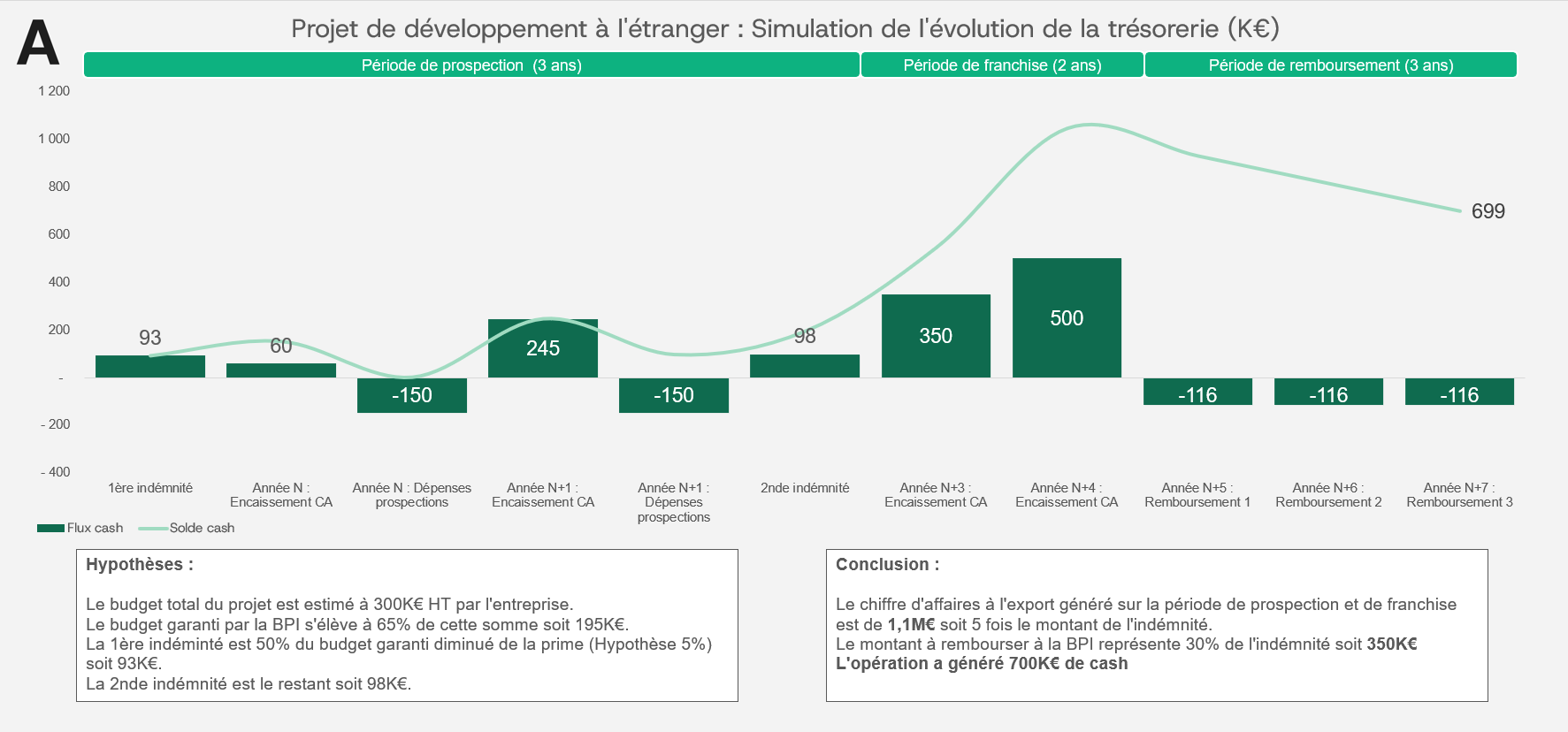 La force du dispositif réside dans son caractère hybride. Succès complet : remboursement intégral. Succès partiel : remboursement indexé à 10 % du CA export. Échec : forfait minimum d'environ 30 % de l'indemnité. Le risque semble limité, mais ce schéma n'est efficace que si budget, trajectoire de CA et organisation interne sont bien calibrés dès le départ.